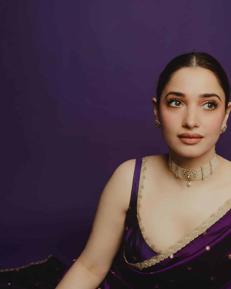 Tamannaah Sets the Night on Fire in Purple Saree! – FilmShlim