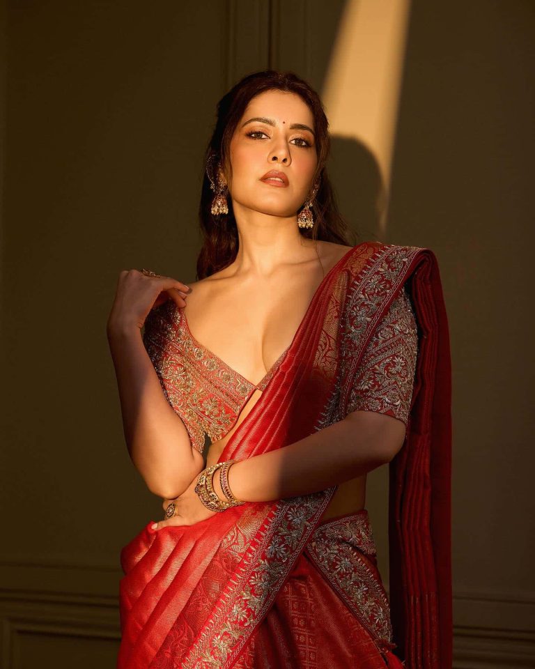 Raashii Khanna’ Festive Vibes In Red Saree – Pics –