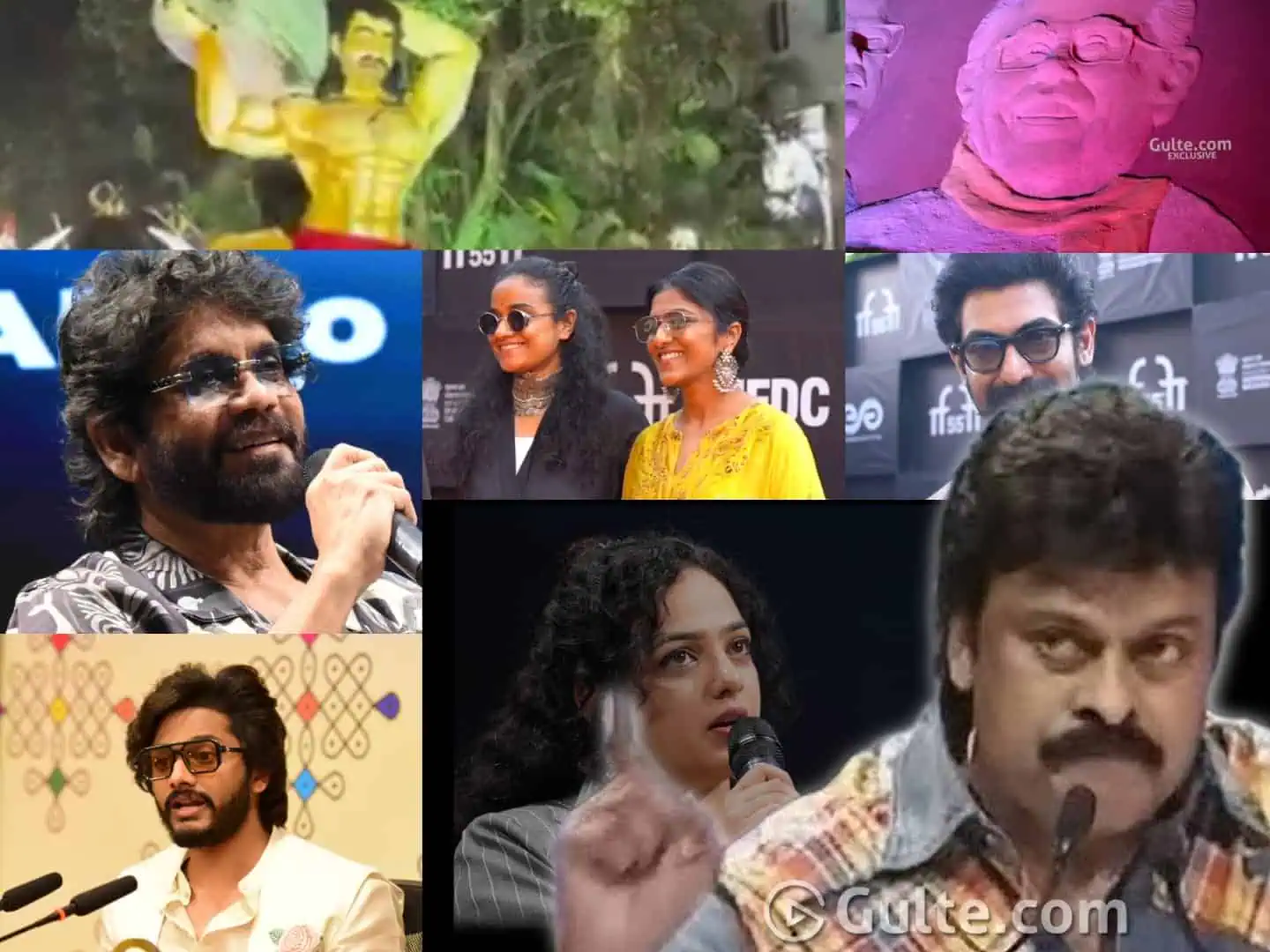 Right now, the 55th edition of ‘IFFI-Goa’ – International Film Festival of India is being taken place. It is the same festival Megastar Chiranjeevi talked about seventeen years ago. The tables are completely turned upside down now at the festival. Akkineni Nagarjuna, Rana Daggubati, Swapna Dutt, Priyanka Dutt, Teja Sajja and many others from the Telugu film industry attended the film festival at Goa this year. People are paying enough attention when our film personalities are talking at the festival and showering unconditional love. Huge idols of characters played by Prabhas in Baahubali and Adipurush were featured at a roadshow organised by the organisers of the film festival last evening in Goa. It is the first time ever a Telugu hero’s character idols are featured at the roadshow during the Goa film festival.