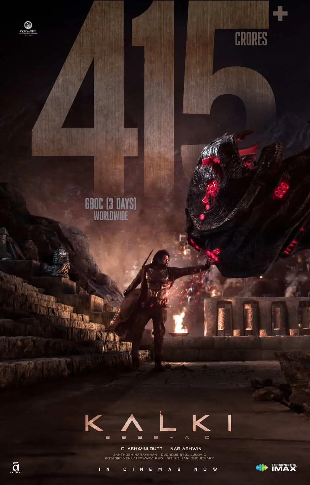 The movie is unstoppable with substantial numbers in domestic and overseas regions. Kalki 2898 AD grossed the Rs 415Cr in just 3 days.