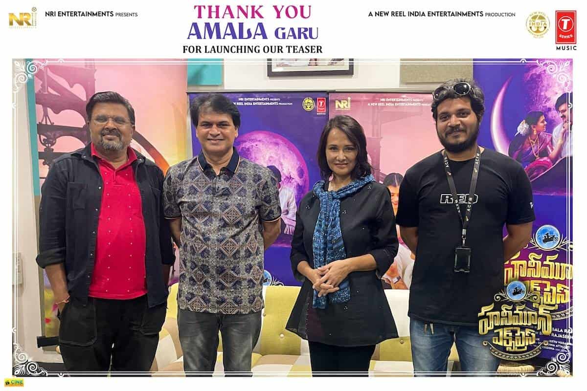 Later, Amala watched the teaser with the team. She said, “Bala has been a professor of acting and screenplay in the US for a long time. But, he always wanted to make a Telugu film one day. Now, I am so glad that his dream has come true. Teaching is one kind of endeavor, and making a film is another kind of challenge. I am happy that Bala has included our faculty, staff and students in ‘Honeymoon Express.’ I’m sure they gained practical experience which is very much needed.