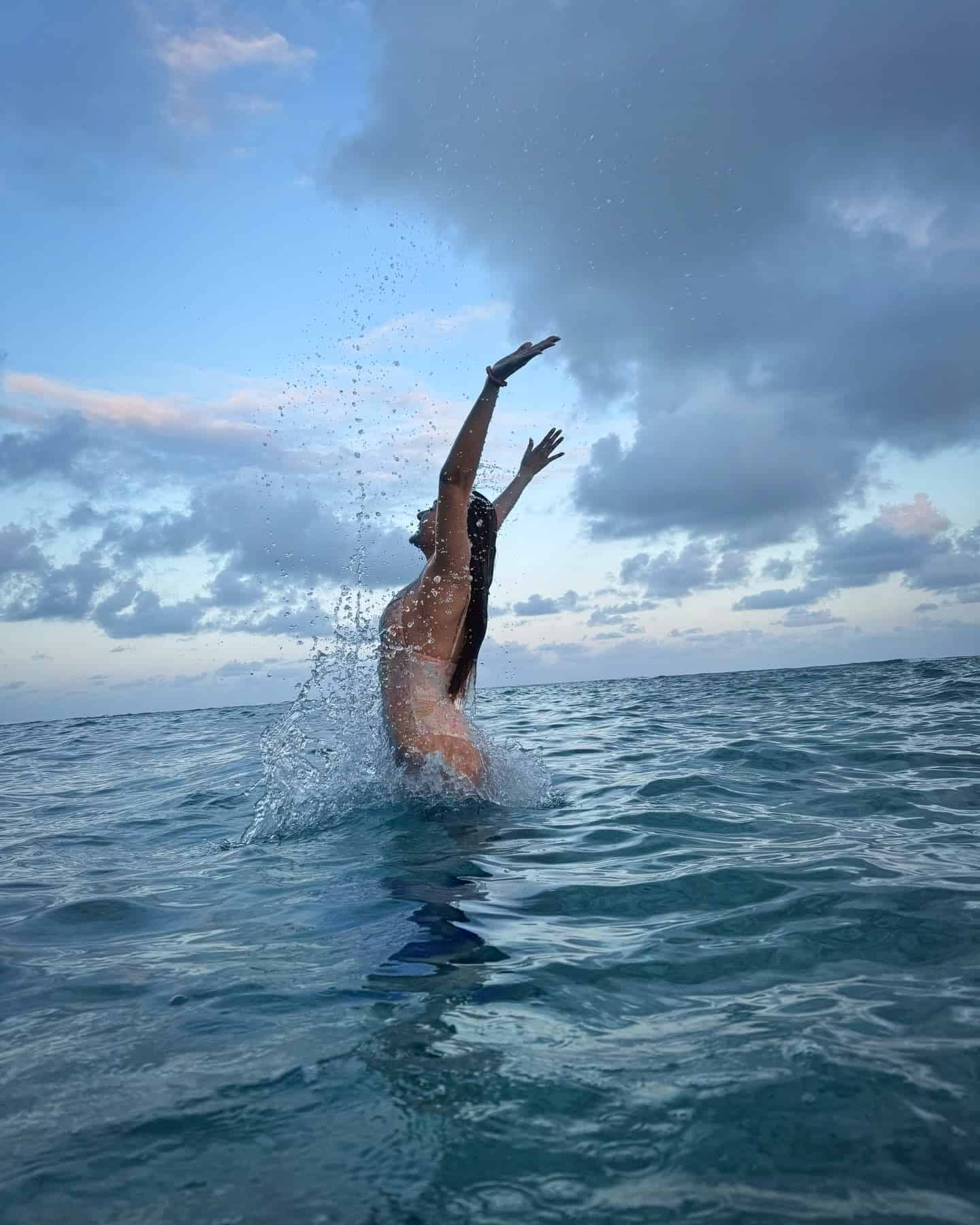 The stunning Amyra Dastur is soaking up the sun and enjoying the crystal-clear waters of the Maldives. The actress is turning heads in a stylish light purple cutout bikini, paired with a giant hat that provides both shade and a touch of glamour.
