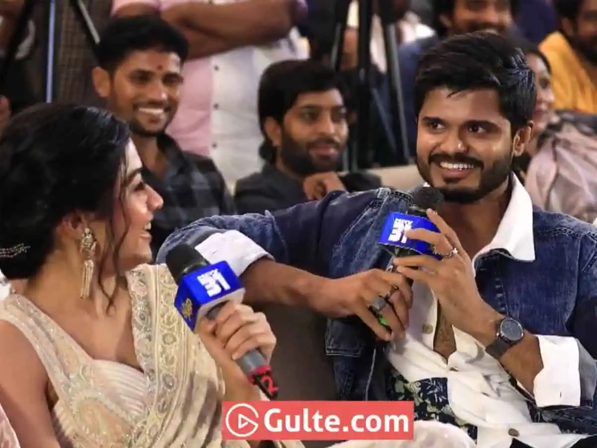 One more incident of that sort happened at the Gam Gam Ganesh event last night. Anand Deverakonda asked Rashmika Mandanna to name her favorite costar. Rashmika knew where this was going and she laughed off asking Anand how he could put her in a fix. She asks him,’ You are my family. How could you put me in the spot ra?’