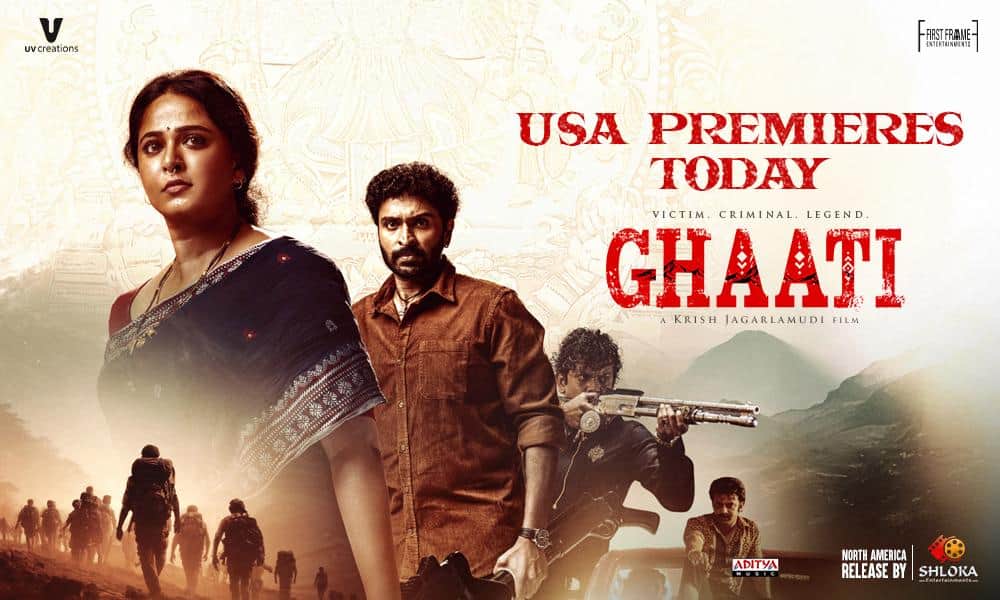 Queeen Anushka Shetty starrer most-awaited action thriller Ghaati, directed by Krish Jagarlamudi, produced by First Frame Entertainments and presented by UV Creations, is all set for a grand release worldwide tomorrow, with USA premieres happening today. Bringing the film to the USA audience is Shloka Entertainments, a leading distribution house behind several blockbuster Telugu releases, including Sarkaru Vaari Paata. With Ghaati, they are all set to deliver yet another power-packed theatrical experience to US moviegoers.