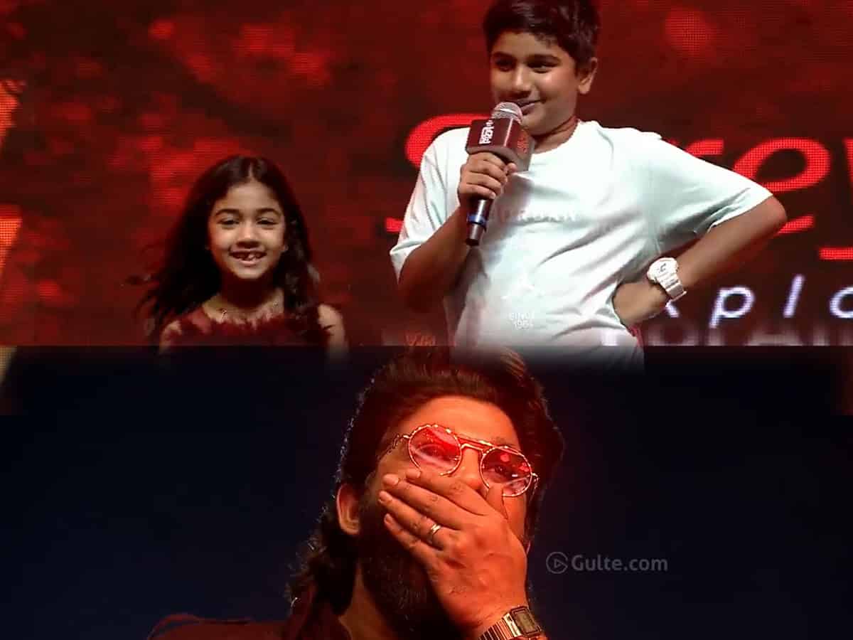 While the speeches from film celebrities usually turn the center of attraction, this event’s spotlight was grabbed by two cute celebrities Allu Ayaan and Allu Arha. The kids of Allu Arjun joined the prerelease event of Pushpa 2 and they surprised their dad Allu Arjun with their cute words on stage.