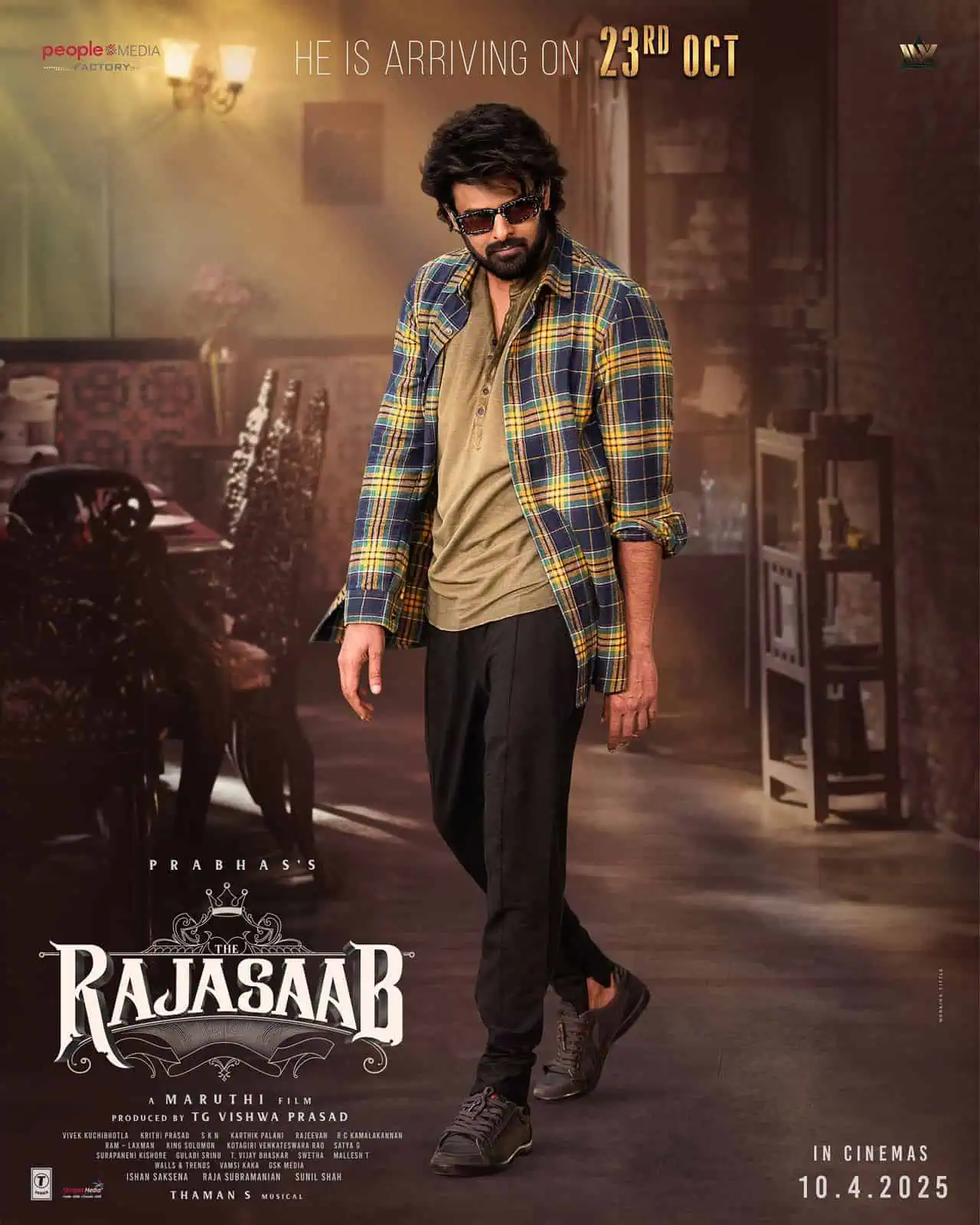 This intriguing romantic horror film is directed by the beloved Maruthi and produced under the People Media Factory banner. Maruthi has showcased Prabhas in a fashionable look that has delighted moviegoers and darling fans alike. The makers also promise a major surprise on October 23rd.