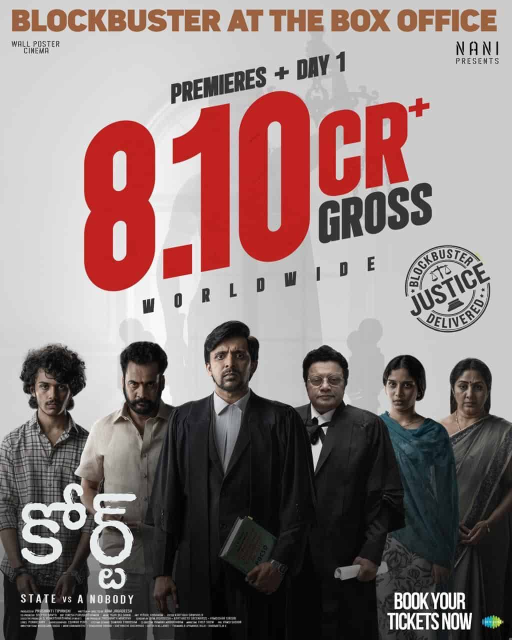 Natural Star Nani’s Court: State Vs Nobody which was made under his banner Wall Poster Cinema with Priyadarshi, Harsh Roshan and Sridevi playing the leads has made a strong business on its day one, after raking in solid collections through premieres.