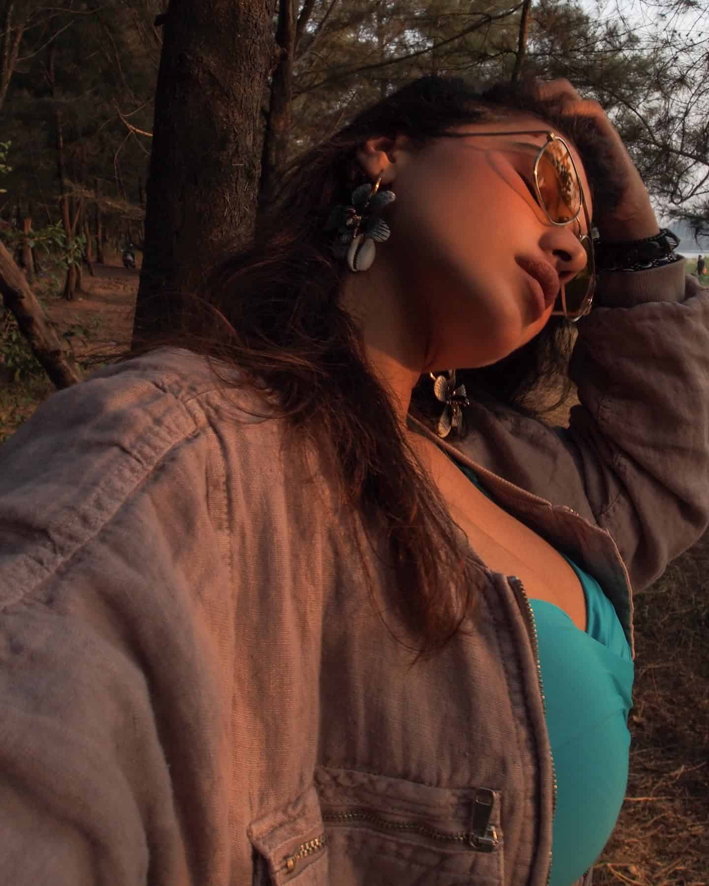 With her hair styled effortlessly and minimal makeup, Ketika looks fresh-faced and radiant. It’s clear she’s enjoying her time away from the city noise, and her infectious smile is proof of it. This picture-perfect moment is a treat for her fans, and we can’t wait to see more of Ketika’s adventures.