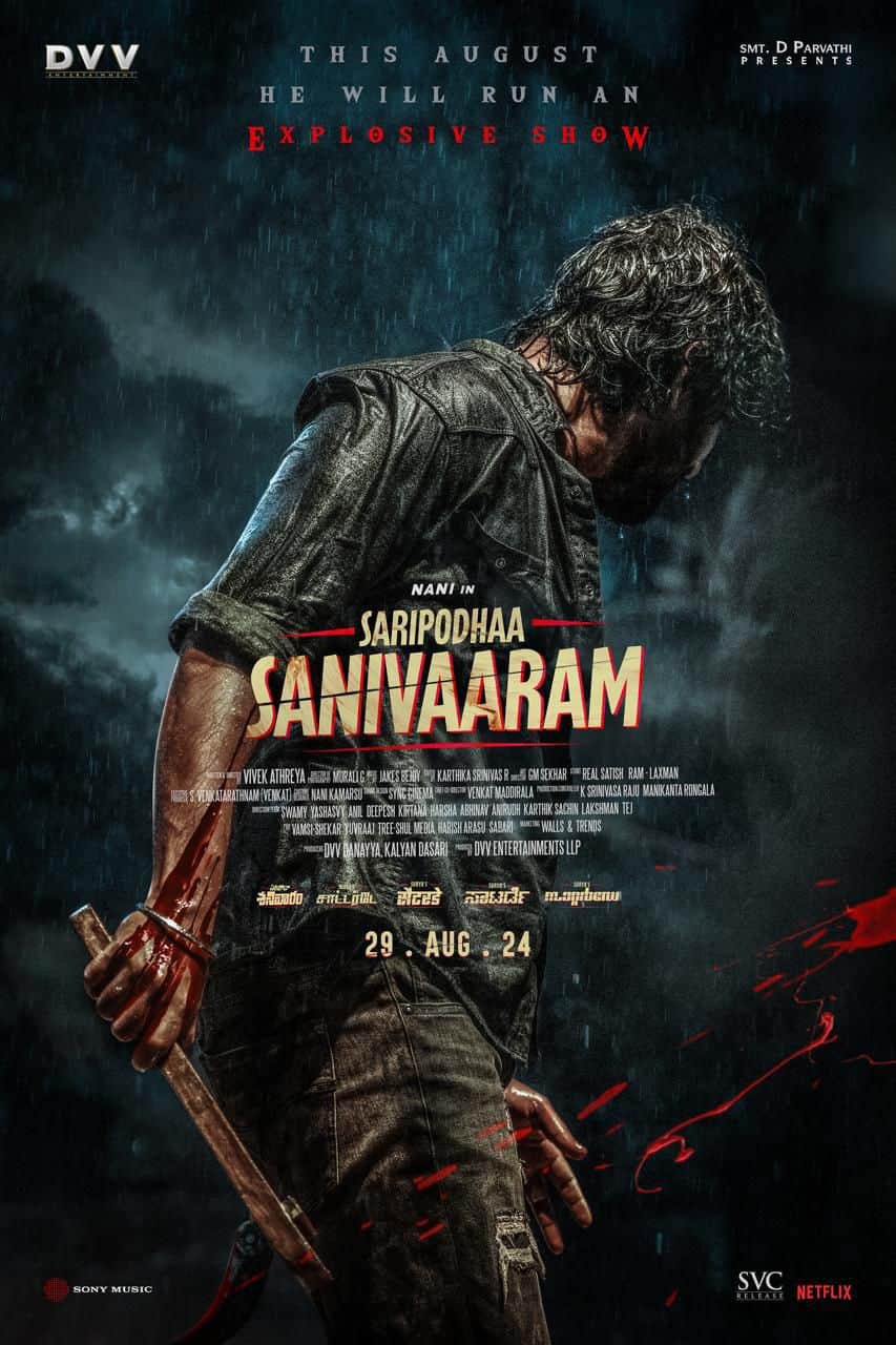Though Nani’s face is obscured, the poster exudes a fierce energy, teasing a massive show from Surya, his character name in the movie. This picture hints at a thrilling and high-octane August promotional campaign.