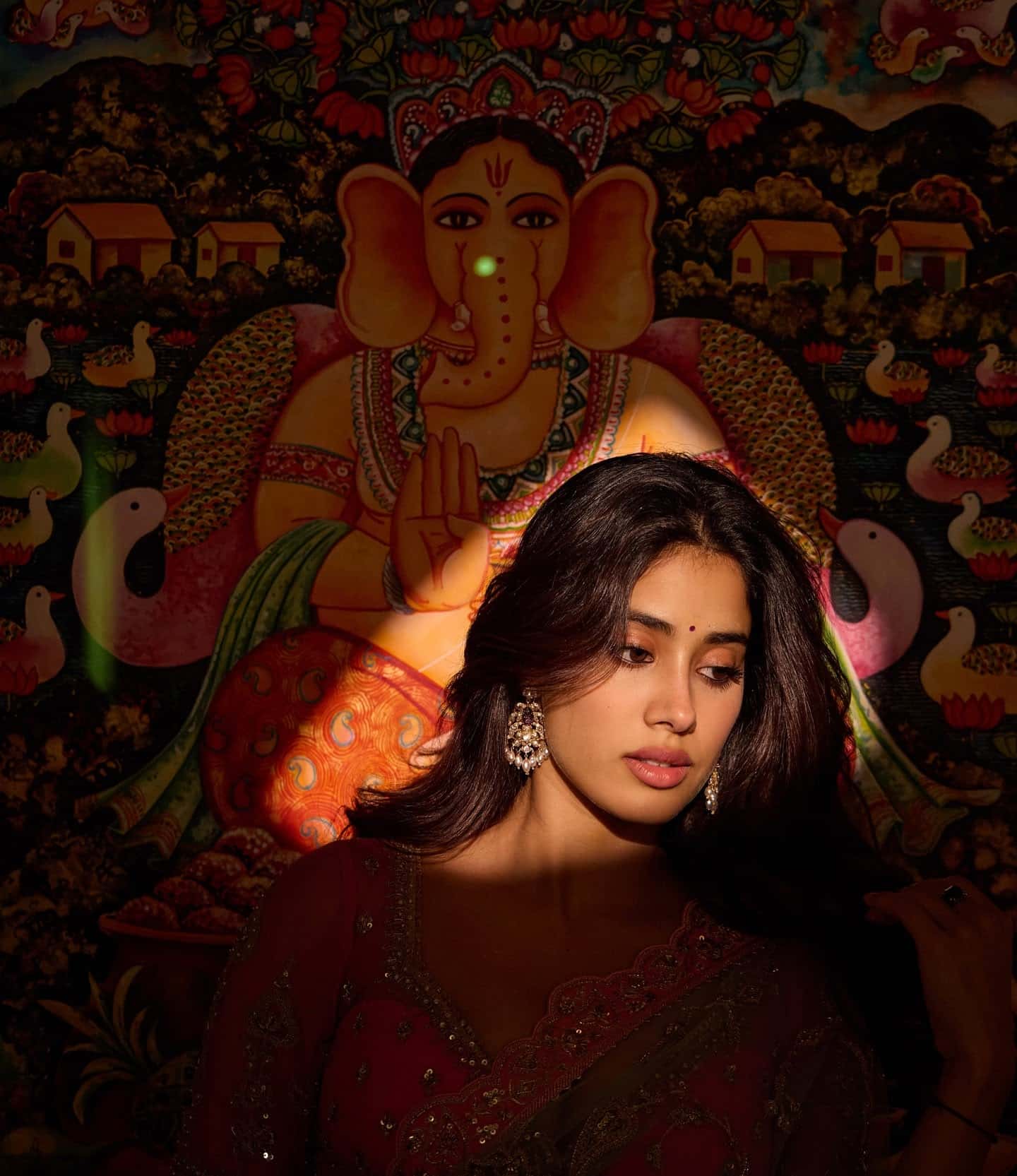 Janhvi Kapoor, the Bollywood actress who recently graced the silver screen in Jr. NTR’s Devara, has expressed her love for the festive season of Diwali. The actress took to social media to share a stunning picture of herself, dressed in a beautiful pink saree.