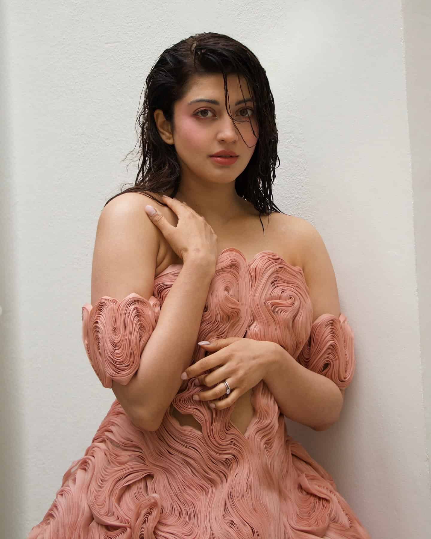 Dressed in a stunning pink off-shoulder dress paired with bold orange stockings, she rocked the wet-hair look, exuding sheer elegance. Posing against a breathtaking Parisian monument, she looked nothing less than a living doll!