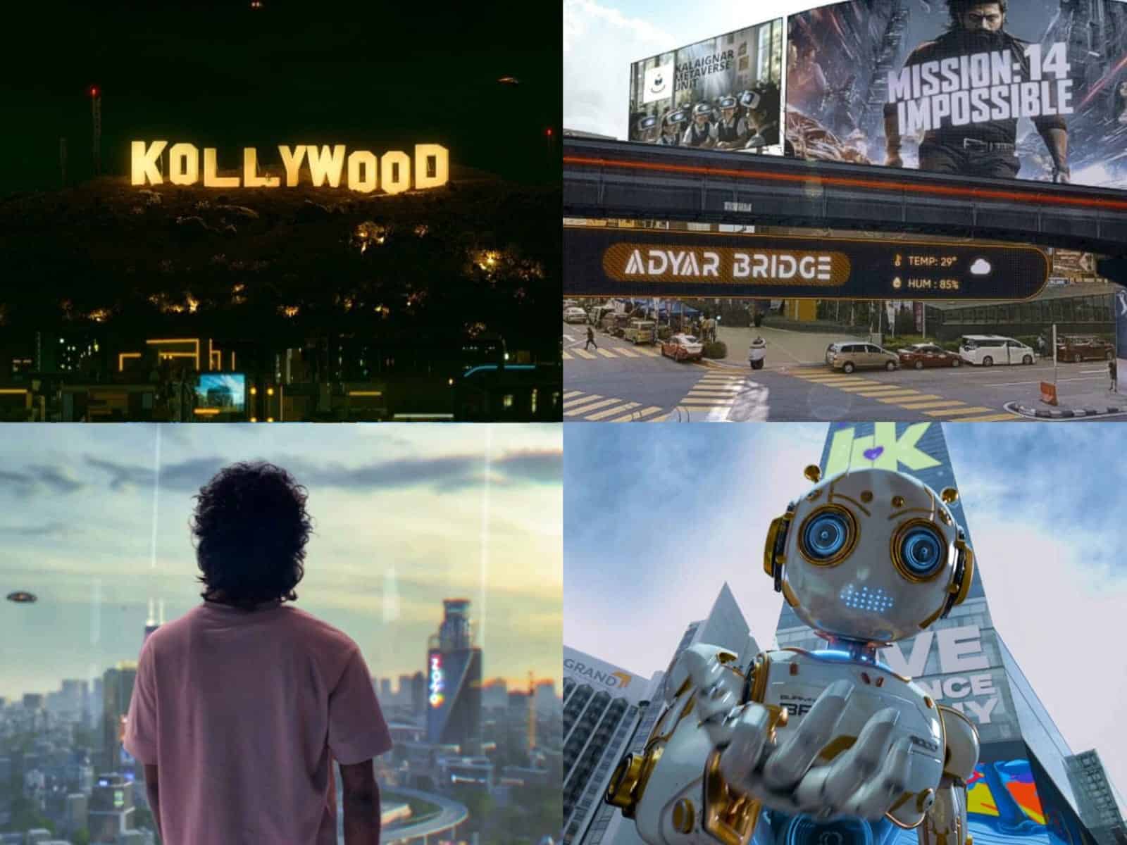 The teaser is filled with witty futuristic touches, including Mission Impossible 14’s poster featuring Yash, a smart umbrella with weather predictions, running, texting and cycling tracks and a Thalaivar 189 poster.