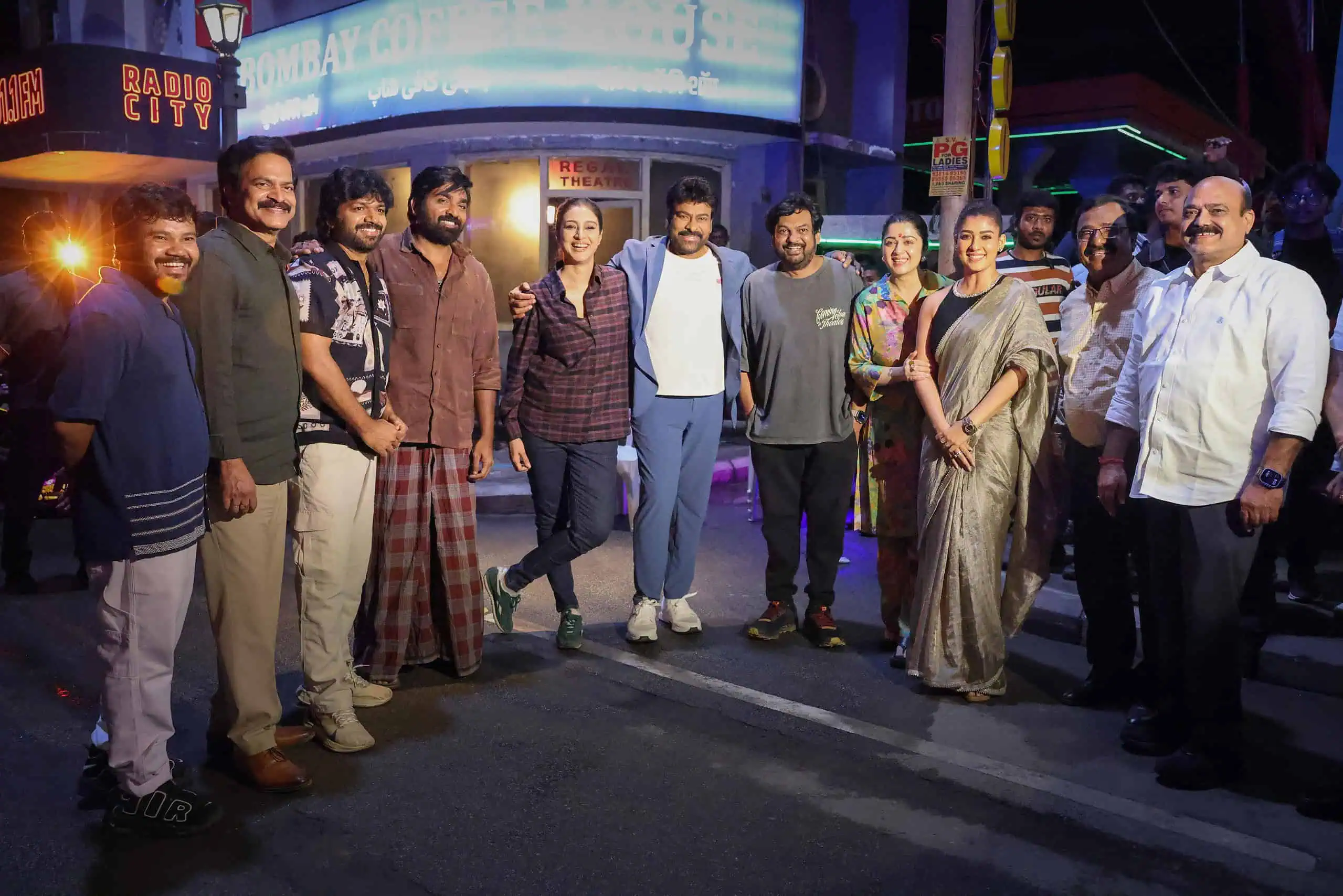 Interestingly, as the shoots for both movies are taking place at the same studio, the teams happened to cross paths. Chiranjeevi was seen sporting a stylish look in a suit, while Vijay Sethupathi appeared in a massy lungi look in this image.