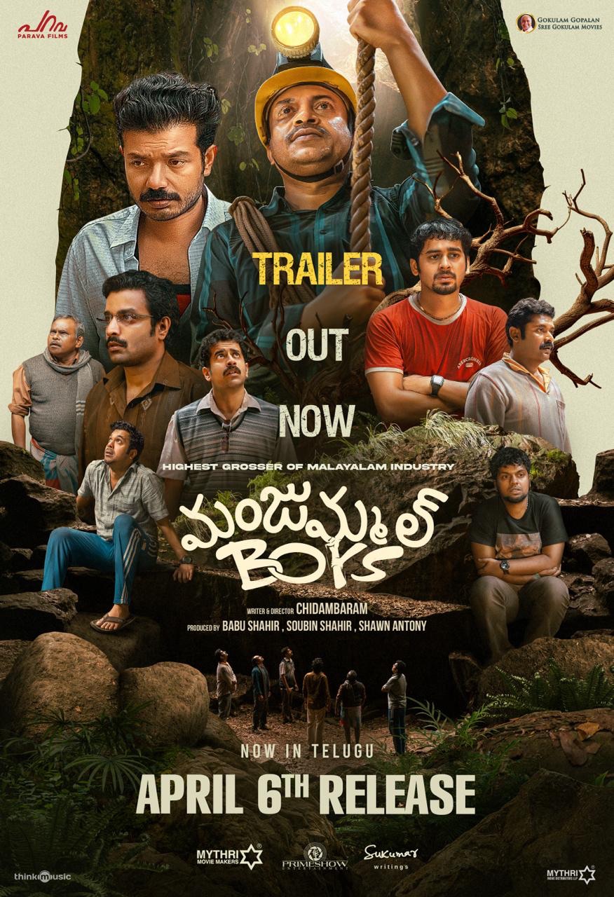 The trailer promises that Manjummel Boys is an adventurous voyage that is going to work well in Telugu as well. Mythri Movie Makers backing is the other advantage for the Telugu version. The dubbing work deserves special mention. The movie will be released on April 6th.