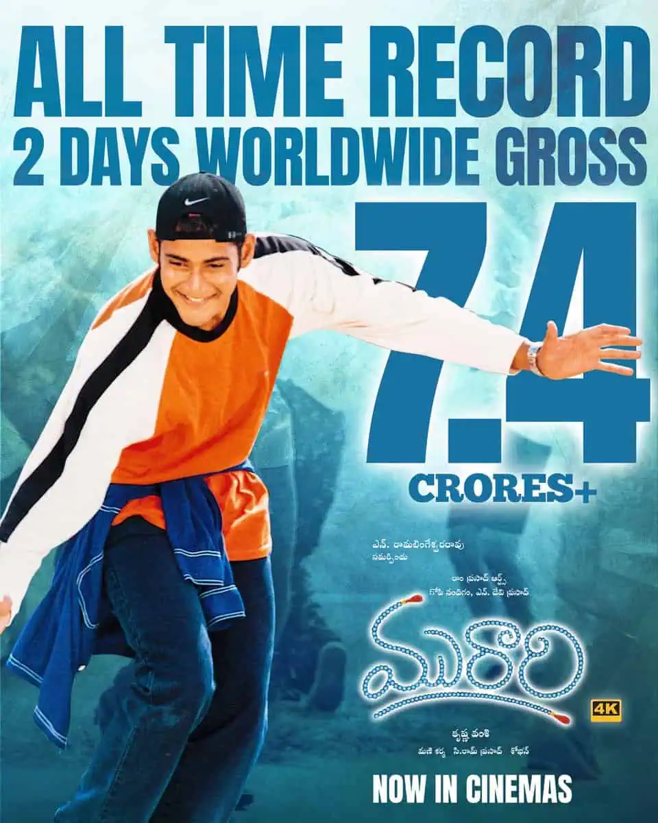 In just two days, the film seems to have collected a gross of over 7.4 crore rupees. Earlier, Mahesh’s re-releases of Okkadu and Pokiri have also performed well at the box office by generating decent revenues for the distributors.