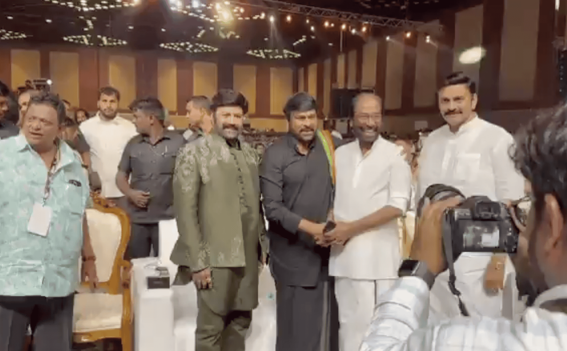Balayya welcomed RRR with a wide smile on his face and the TDP MLA showed adoration to the Nandamuri hero. Chiranjeevi is also seen having a pleasant conversation with RRR as he said “What’s up Mr. Raghu Rama… the famous R R R…”