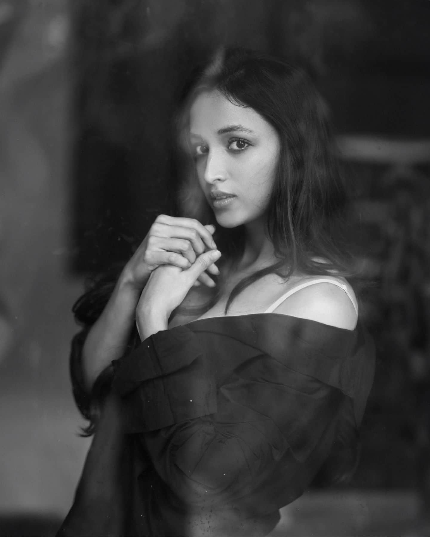 Draped in a sleek black shirt, Srinidhi gives a glimpse of her toned midriff, adding a touch of oomph to the otherwise classic look. But make no mistake, there’s nothing vulgar here. Srinidhi exudes pure class with her confident pose and captivating gaze. The black and white palette allows her natural beauty to shine through, and the overall vibe is sophisticated and undeniably stylish.