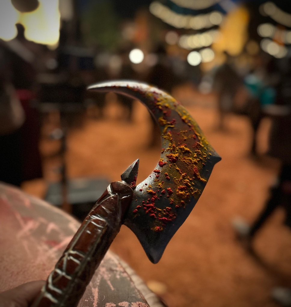 The team shared a still from the song’s shoot which showcases a sickle type of weapon on which there is Kumkum and Turmeric. It clearly indicates that Ayudha Puja is happening and the song seems to be a special highlight.