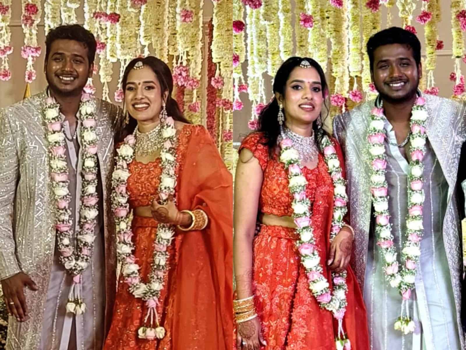 Rahul, dressed in a silver sherwani with intricate work, looked every bit the star, while Harini in a striking red lehenga stole hearts with her calm elegance. The garlands, the jasmine backdrop, and the effortless smiles made the moment look less like a staged ceremony and more like two people genuinely happy to find each other.