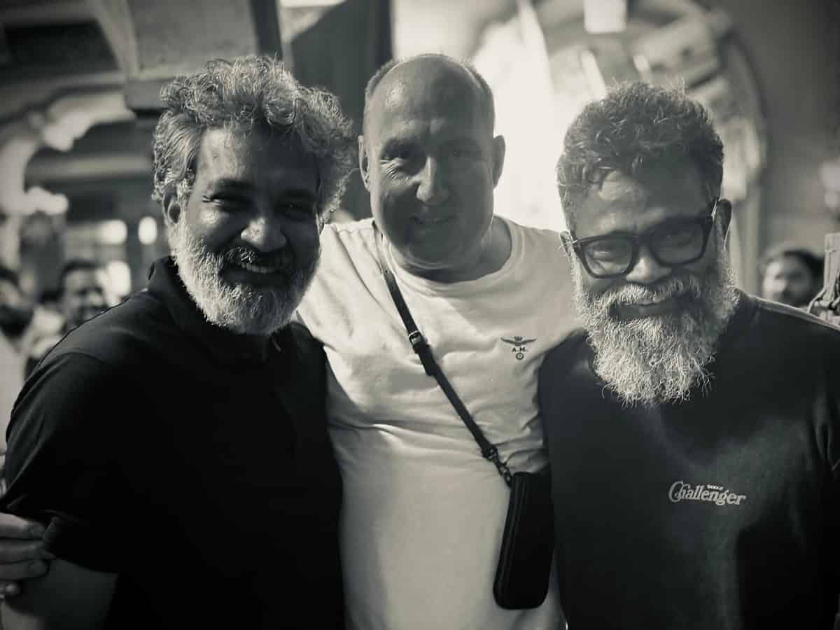 Rajamouli today visited the sets of Pushpa 2 and the director Sukumar shared the experience of having the ‘Baahubali of directors on his Pushpa 2 sets’.
