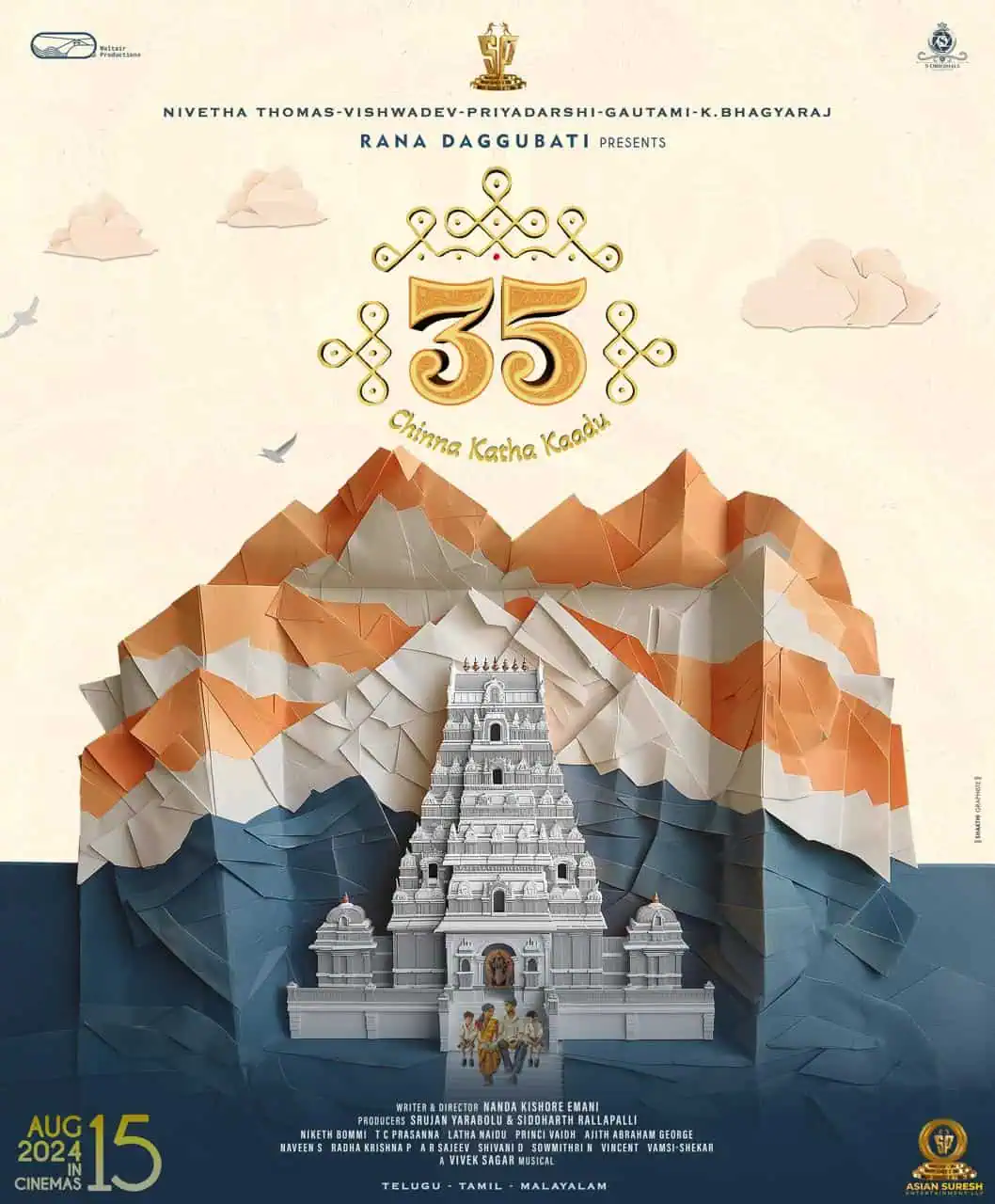 The title 35-Chinna Katha Kaadu alone generates inquisitiveness for the movie, while the poster looks very pleasant. The movie directed by Nanda Kishore Emani features Nivetha Thomas, Priyadarshi, Vishwadev, Gautami, and Bhagyaraj in prominent roles. Srujan Yarabolu, and Siddharth Rallapalli are the producers.