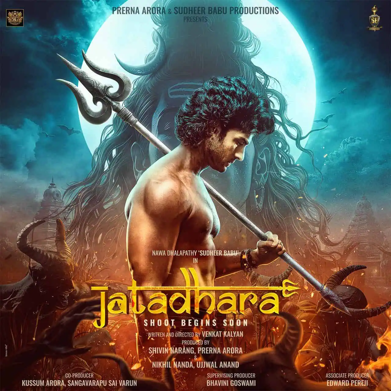 The movie is powerfully titled Jatadhara, a symbol of renunciation from this world and another name for Lord Shiva. The first look poster presents Sudheer Babu in a macho avatar. In the background, we can see Lord Shiva, while Sudheer Babu is seen holding a trident in the foreground.