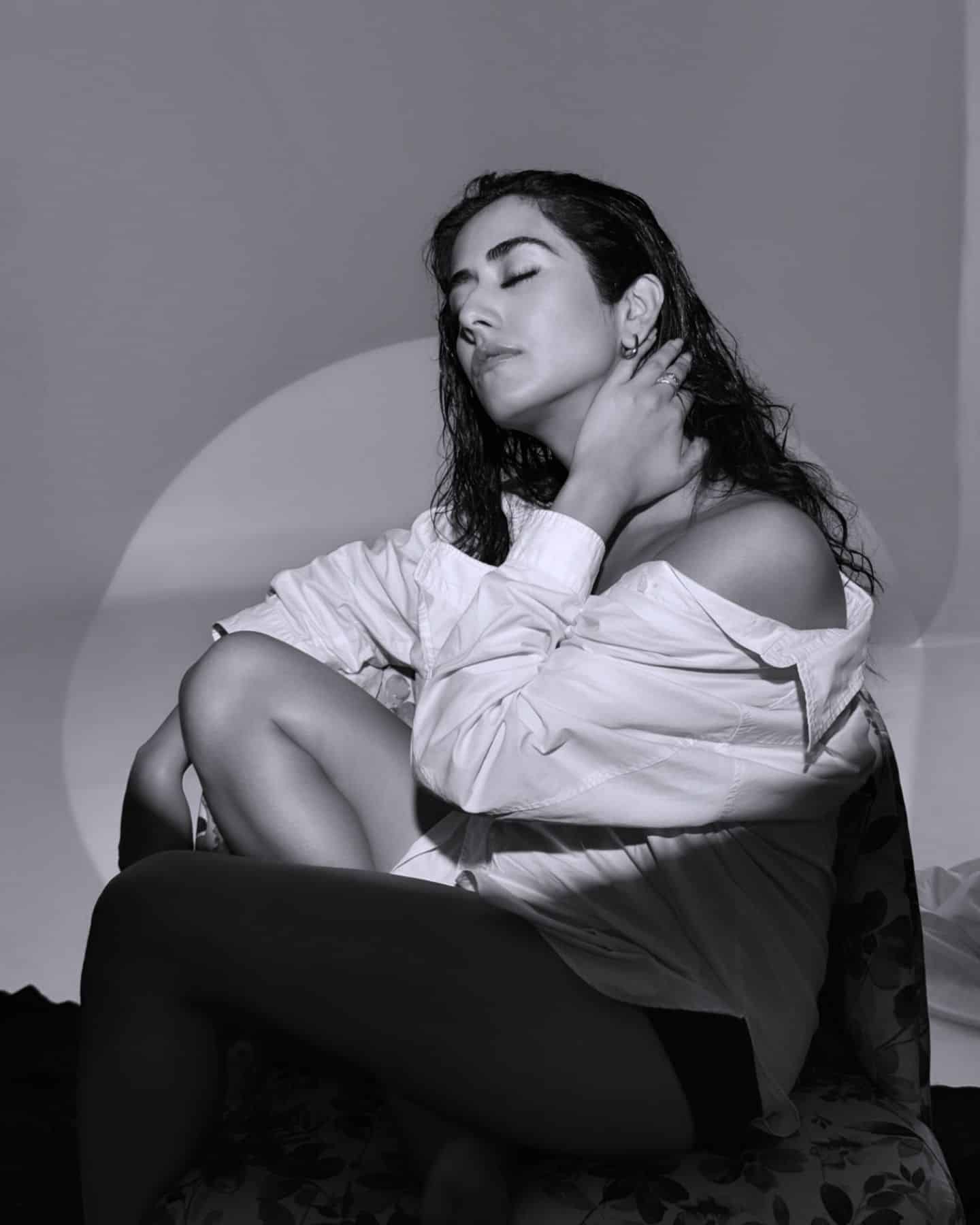 The beautiful singer posted a dump of gorgeous pictures of herself wearing an oversized white shirt in the black-and-white photoshoot. Check out the pictures.