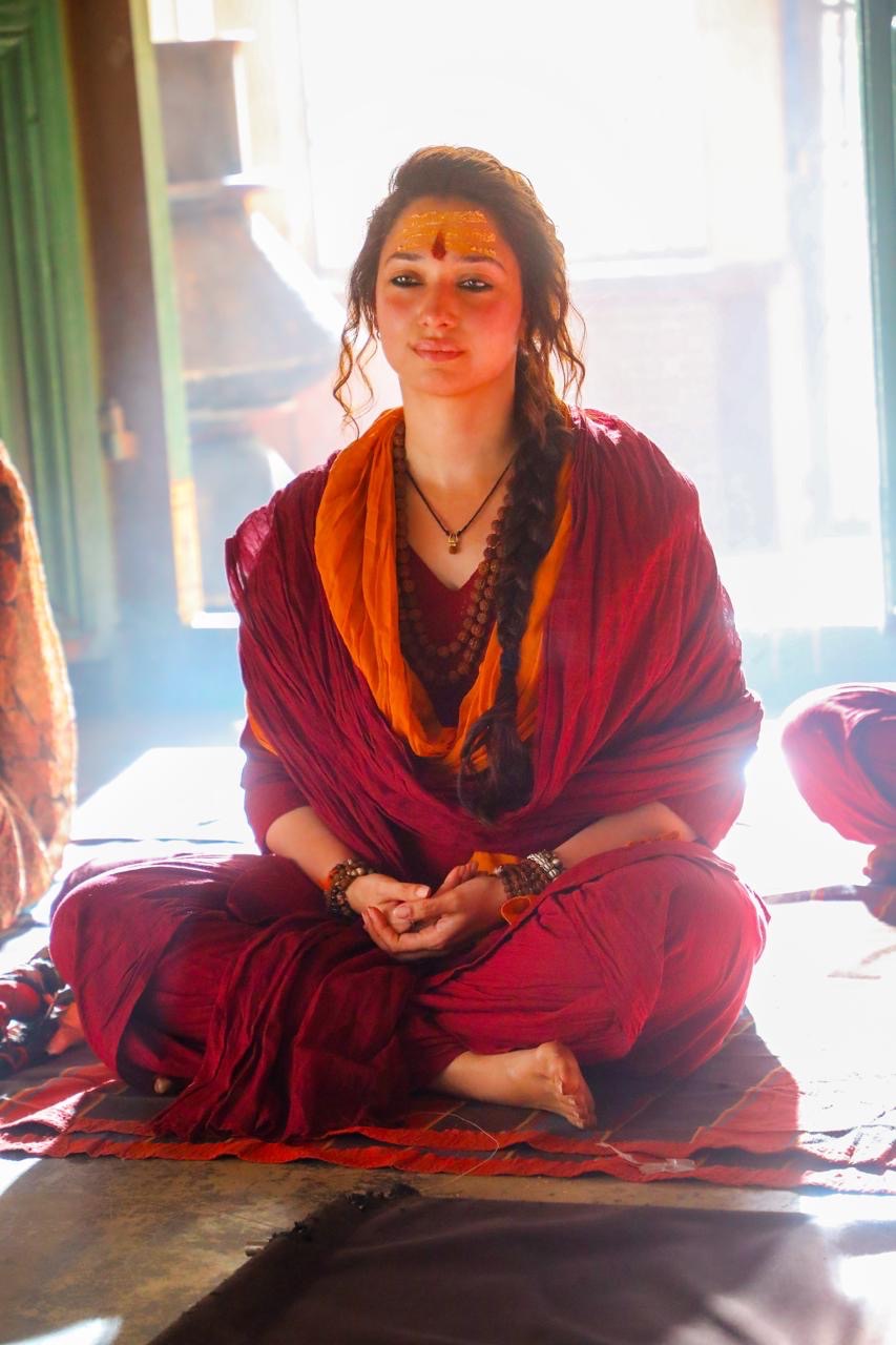Tamannaah in this working still is seen very relaxed. We can observe the serenity in her face. While this poster shows the soft side of the character, she will be seen performing some risky fight sequences in the movie.