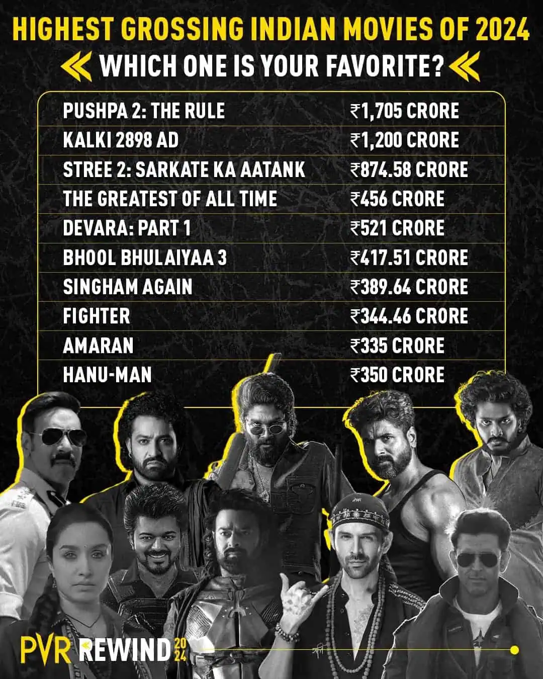 2024 is coming to an end and we are just a few days away from the New Year. This was a fruitful year for Indian cinema as many films from various languages. It was Icon Star Allu Arjun’s Pushpa 2 which emerged as the biggest hit of this year by earning more than Rs. 1705 crore at the box office.
