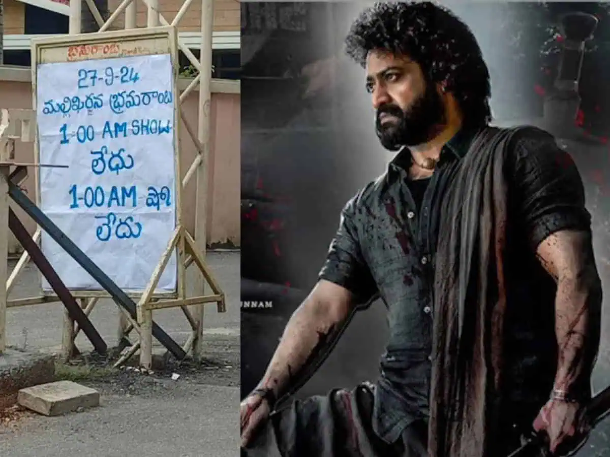 NTR’s Devara will hit screens across the globe tomorrow. Koratala Siva is the film’s director. The makers have planned an amazing release for the film in and outside the Telugu states. Meanwhile, the fans are excited for the 1 AM shows that will be premiered in Telugu states. However, the show was canceled at the Mallikarjuna-Brahmarambha theatre complex in KPHB, Hyderabad.