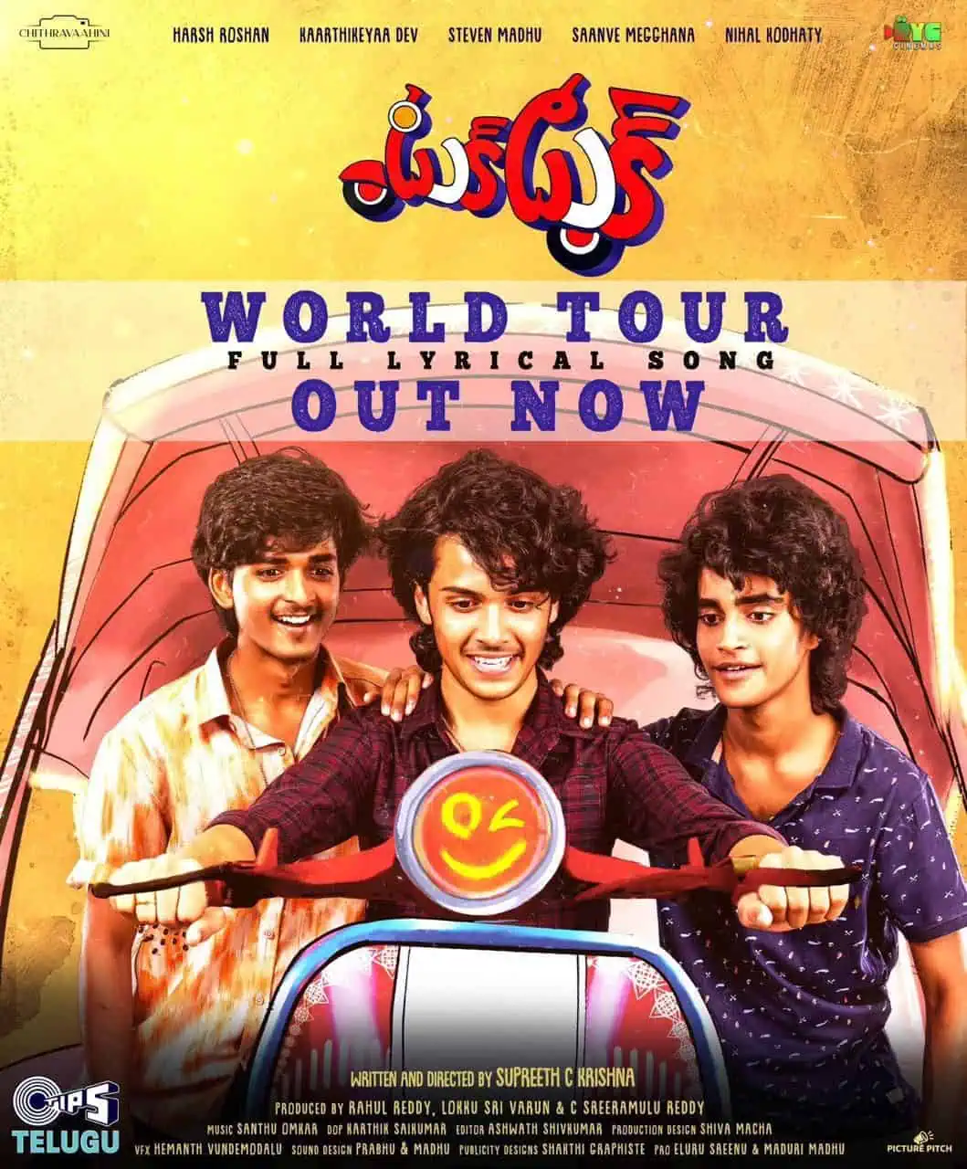 The fun-filled entertainer Tuk Tuk, starring Harsha Rohan, Karthikeya Dev, Steven Madhu, Sanvi Meghana, and Nihal Kodati in lead roles, is being produced under the banners of Chitravahini and RYJ by Rahul Reddy, Lokku Srivarun, Sriramulu Reddy, and Supreet C. Krishna. The movie is directed by C. Supreet Krishna. The recently released promotional posters of this film have captivated everyone.