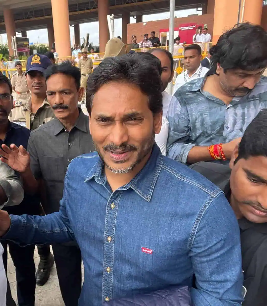Jagan who usually wears a white shirt and kaki pant has changed it up with his airport look this time as he is seen in a complete denim outfit. He has completely different visual optic in this latest public appearance and this is something new to his fans as well.